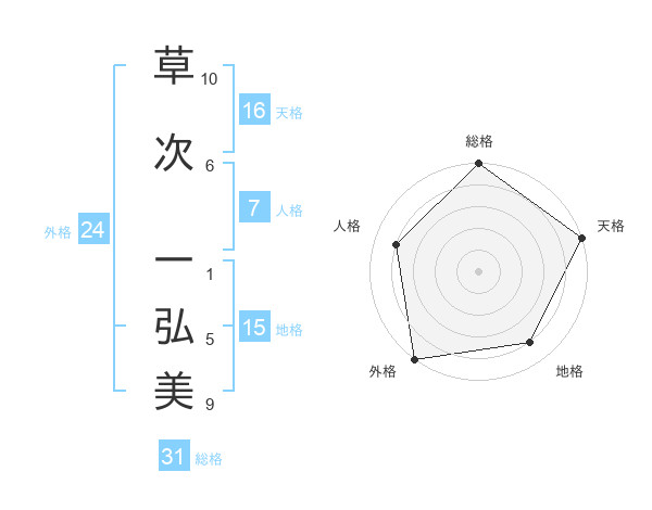 草次 一弘美さんを姓名の画数から五運を鑑定