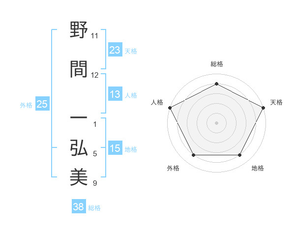 野間 一弘美さんを姓名の画数から五運を鑑定