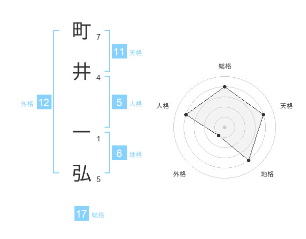 町井 一弘さんの総格は17画の4点!