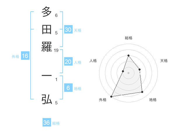 多田羅 一弘さんを姓名の画数から五運を鑑定