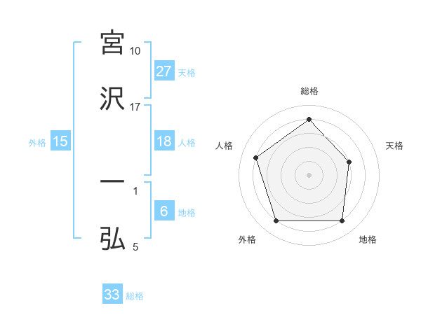 宮沢 一弘さんの総格は33画の4点!