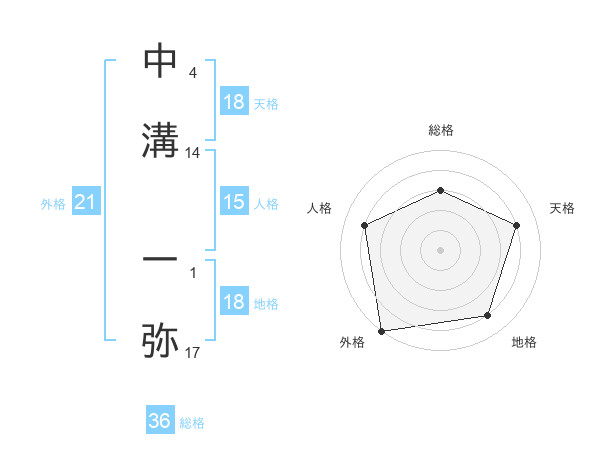 中溝 一弥さんの天格は18画の4点!