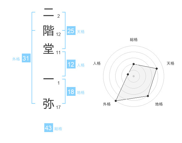 二階堂 一弥さんを姓名の画数から五運を鑑定