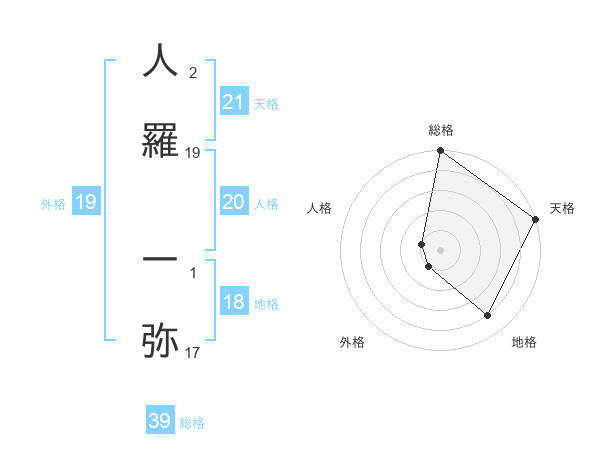 人羅 一弥さんを姓名の画数から五運を鑑定
