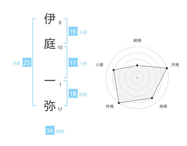 伊庭 一弥さんの天格は16画の5点!