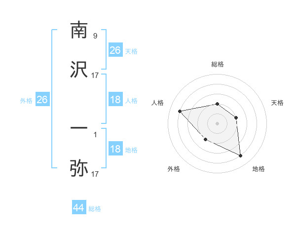 南沢 一弥さんの天格は26画の2点!