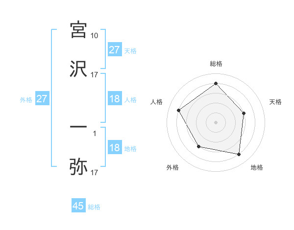 宮沢 一弥さんの総格は45画の4点!