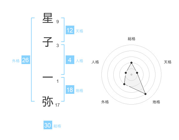 星子 一弥さんの総格は30画の2点!