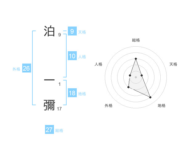 泊 一彌さんの地格は18画の4点