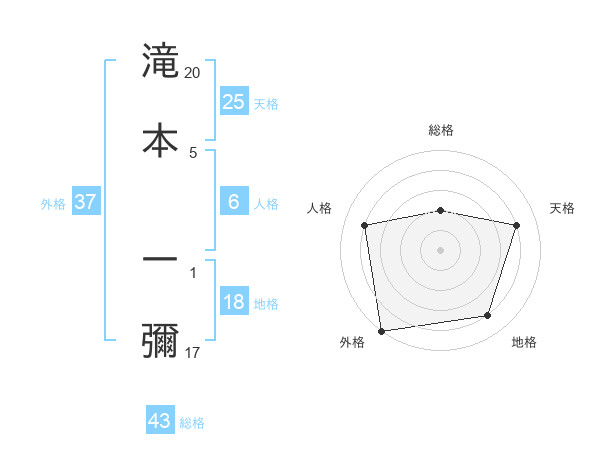 滝本 一彌さんを姓名の画数から五運を鑑定