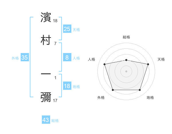 濱村 一彌さんの外格は35画の4点
