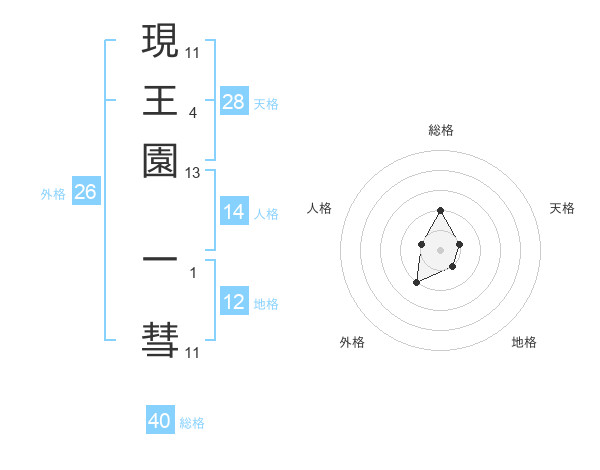現王園 一彗さんの総格は40画の2点!