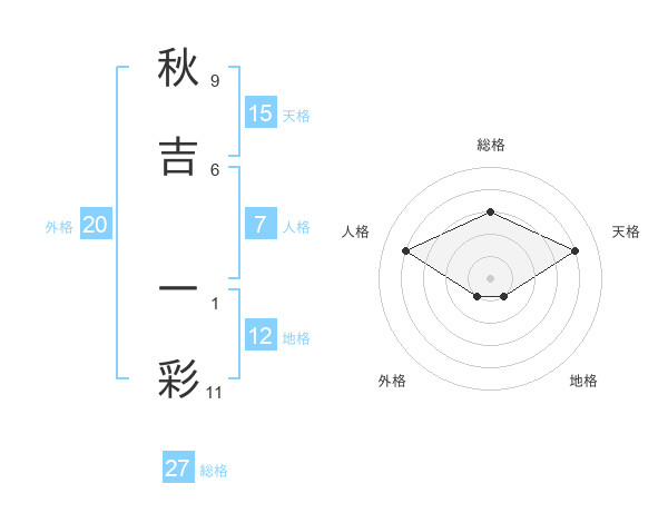 秋吉 一彩さんを姓名の画数から五運を鑑定