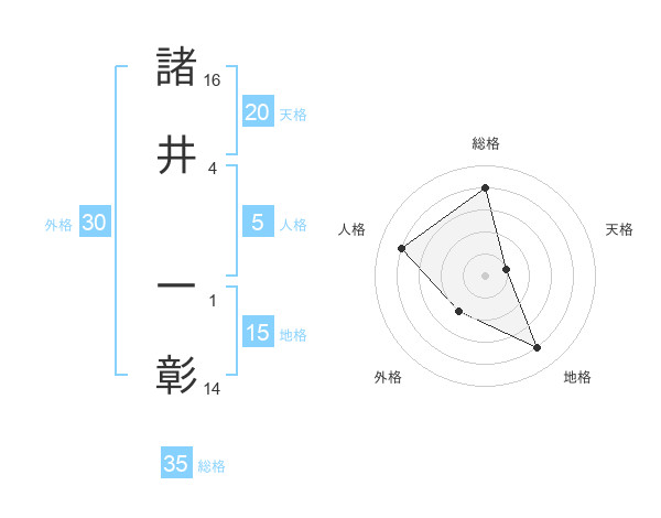 諸井 一彰さんを姓名の画数から五運を鑑定