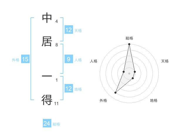 中居 一得さんの総格は24画の5点!