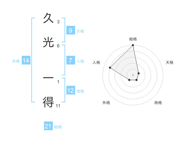 久光 一得さんの総格は21画の5点!