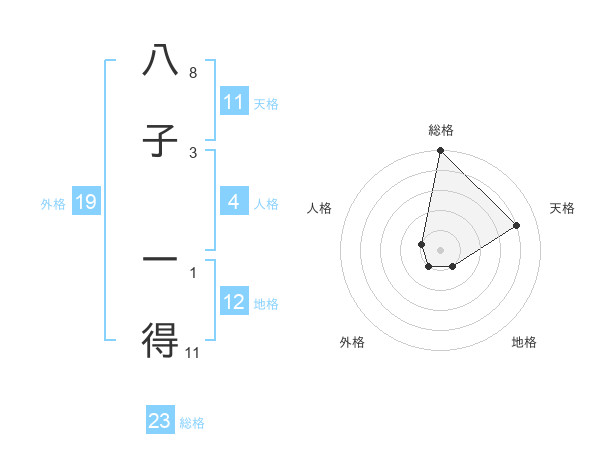 八子 一得さんの総格は23画の5点!