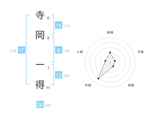 寺岡 一得さんの総格は26画の2点!