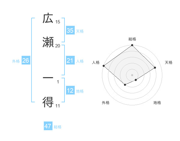 広瀬 一得さんを姓名の画数から五運を鑑定