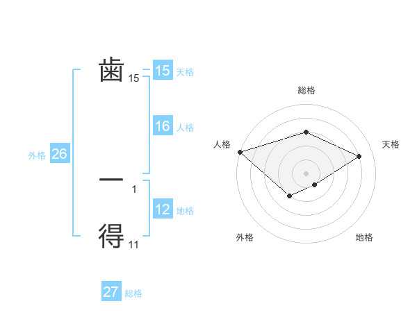 歯 一得さんの総格は27画の3点!