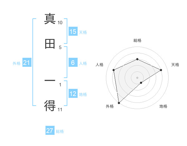 真田 一得さんの天格は15画の4点!