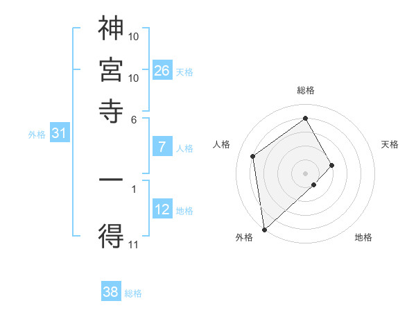 神宮寺 一得さんの総格は38画の4点!