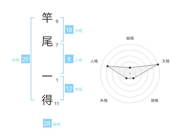 竿尾 一得さんの天格は16画の5点!