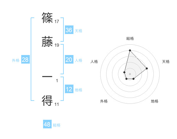 篠藤 一得さんを姓名の画数から五運を鑑定