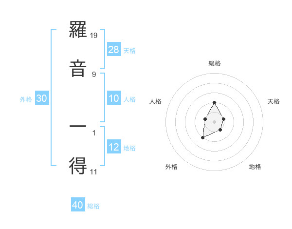 羅音 一得さんの総格は40画の2点!