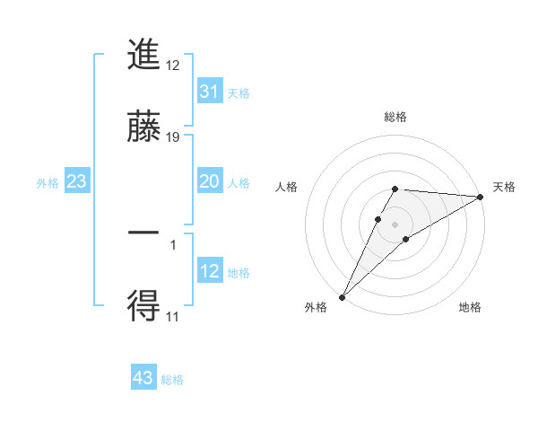 進藤 一得さんの天格は31画の5点!