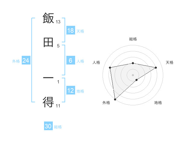 飯田 一得さんの外格は24画の5点!
