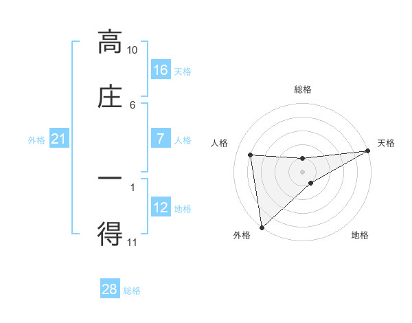 高庄 一得さんの外格は21画の5点!
