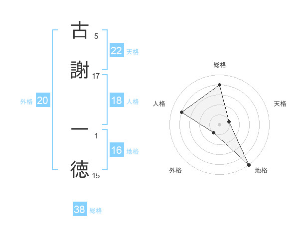 古謝 一徳さんの天格は22画の1点!