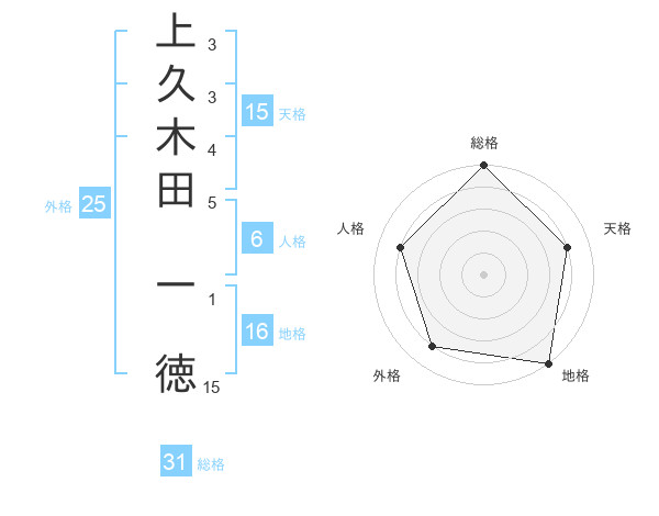 上久木田 一徳さんを姓名の画数から五運を鑑定