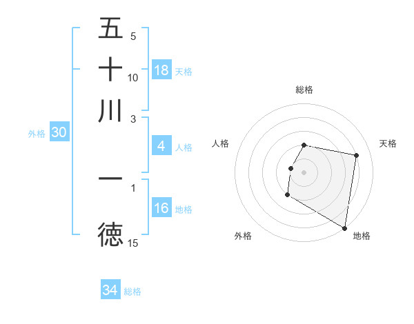 五十川 一徳さんの総格は34画の2点!