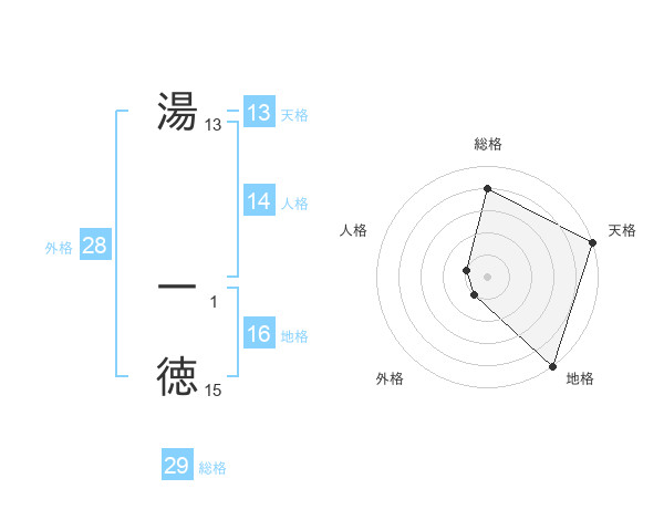 湯 一徳さんの総格は29画の4点!