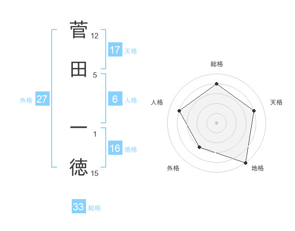 菅田 一徳さんの総格は33画の4点!