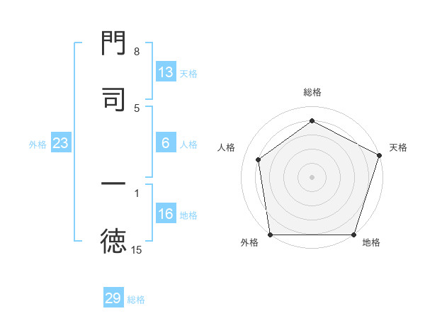 門司 一徳さんの天格は13画の5点!