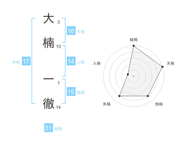 大楠 一徹さんの総格は31画の5点!