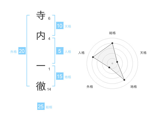 寺内 一徹さんを姓名の画数から五運を鑑定