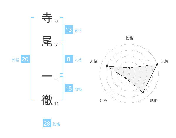 寺尾 一徹さんの天格は13画の5点!
