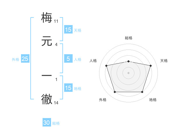 梅元 一徹さんを姓名の画数から五運を鑑定
