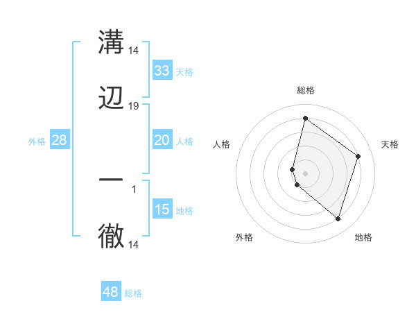 溝辺 一徹さんの総格は48画の4点!