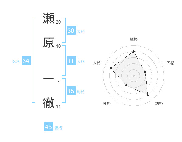 瀬原 一徹さんを姓名の画数から五運を鑑定