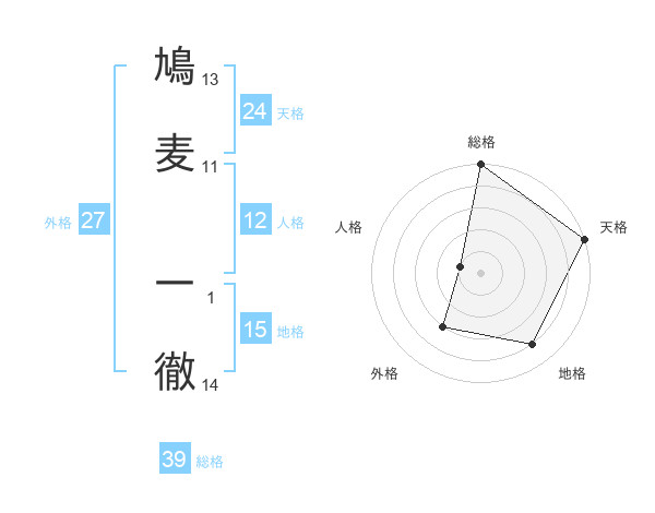 鳩麦 一徹さんを姓名の画数から五運を鑑定