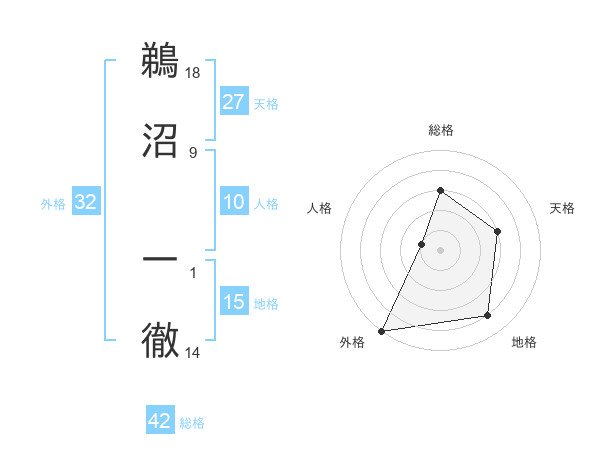 鵜沼 一徹さんを姓名の画数から五運を鑑定