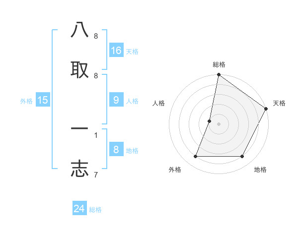 八取 一志さんの総格は24画の5点!