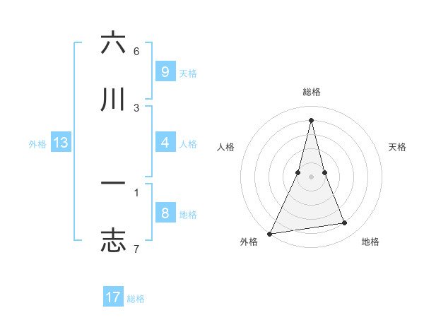 六川 一志さんの総格は17画の4点!