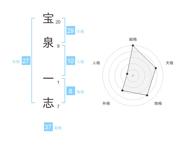 宝泉 一志さんを姓名の画数から五運を鑑定