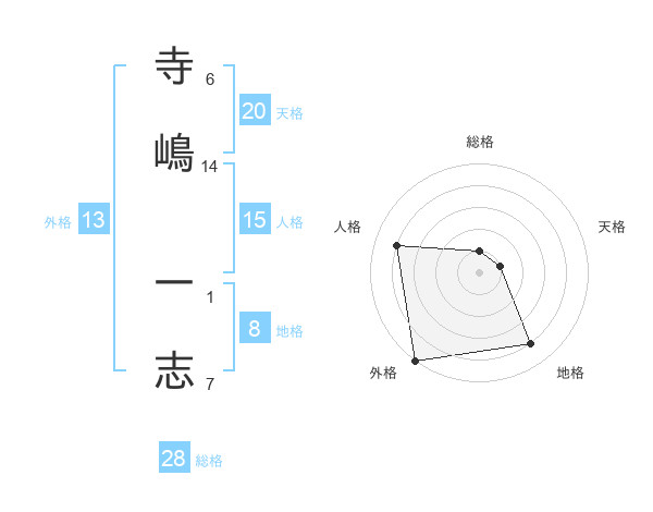 寺嶋 一志さんの外格は13画の5点!